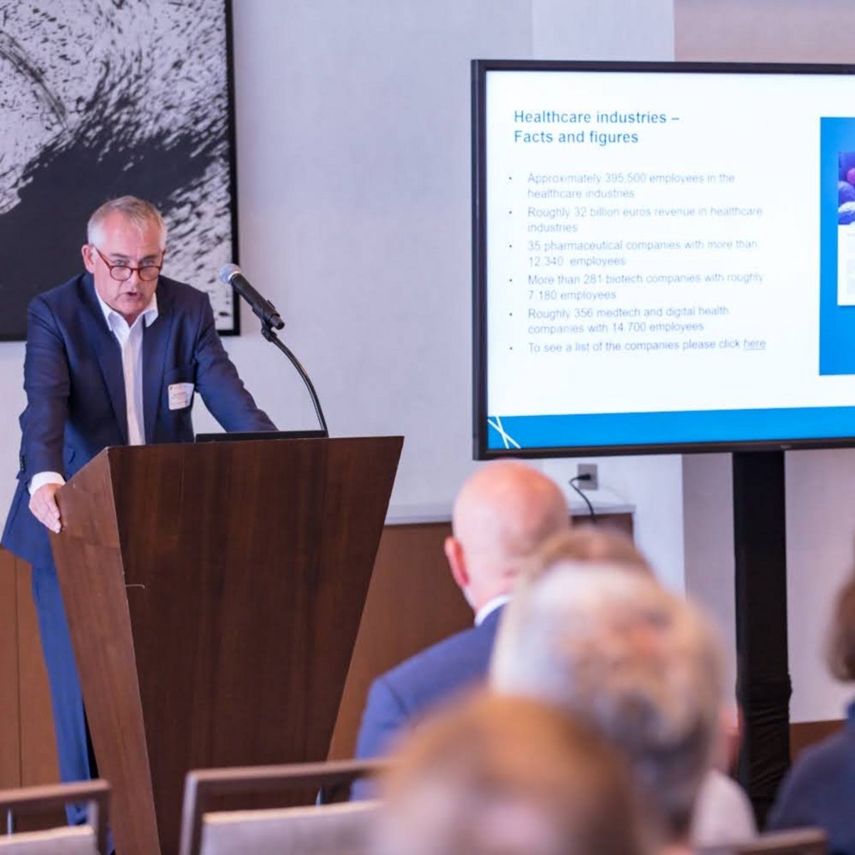 Dietmar Rieg, Präsident und CEO der German American Chamber of Commerce New York (GACC) und Dr. Sonja Kreibich, Consul General to the New England States des German Consulate General Boston (GCGB) eröffneten das Business Frühstück und begrüßten die rund 60 Teilnehmer. Die Wirtschaftsförderung für Deutschland, Germany Trade and Invest (GTAI) mit Referent Harald Mylord, erläutere Trends und Perspektiven der Biotechnologiebranche in Deutschland. Dr. Kai-Uwe Bindseil, Head of Division Healthcare der Berliner Wirtschaftsförderung Berlin Partner für Wirtschaft und Technologie berichtete über Life Sciences und das Healthcare Ecosystem in der Metropolregion und über aktuelle Clusteraktivitäten. Jan-Alexander Ernst machte in seiner Funktion als Head of Airport Region Team die Bedeutung des Flughafens für die Region deutlich, berichtete über aktuelle Entwicklungen beim Zuwachs an wichtigen globalen Verbindungen und von welchen Standortvorteilen ein Unternehmen mit einer Ansiedlung in der Region profitiert.